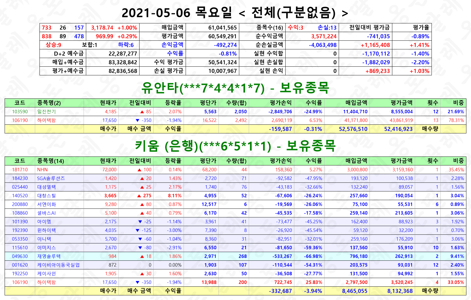 한동안 종가 안맞아서 재실행해서 맞춰더니만