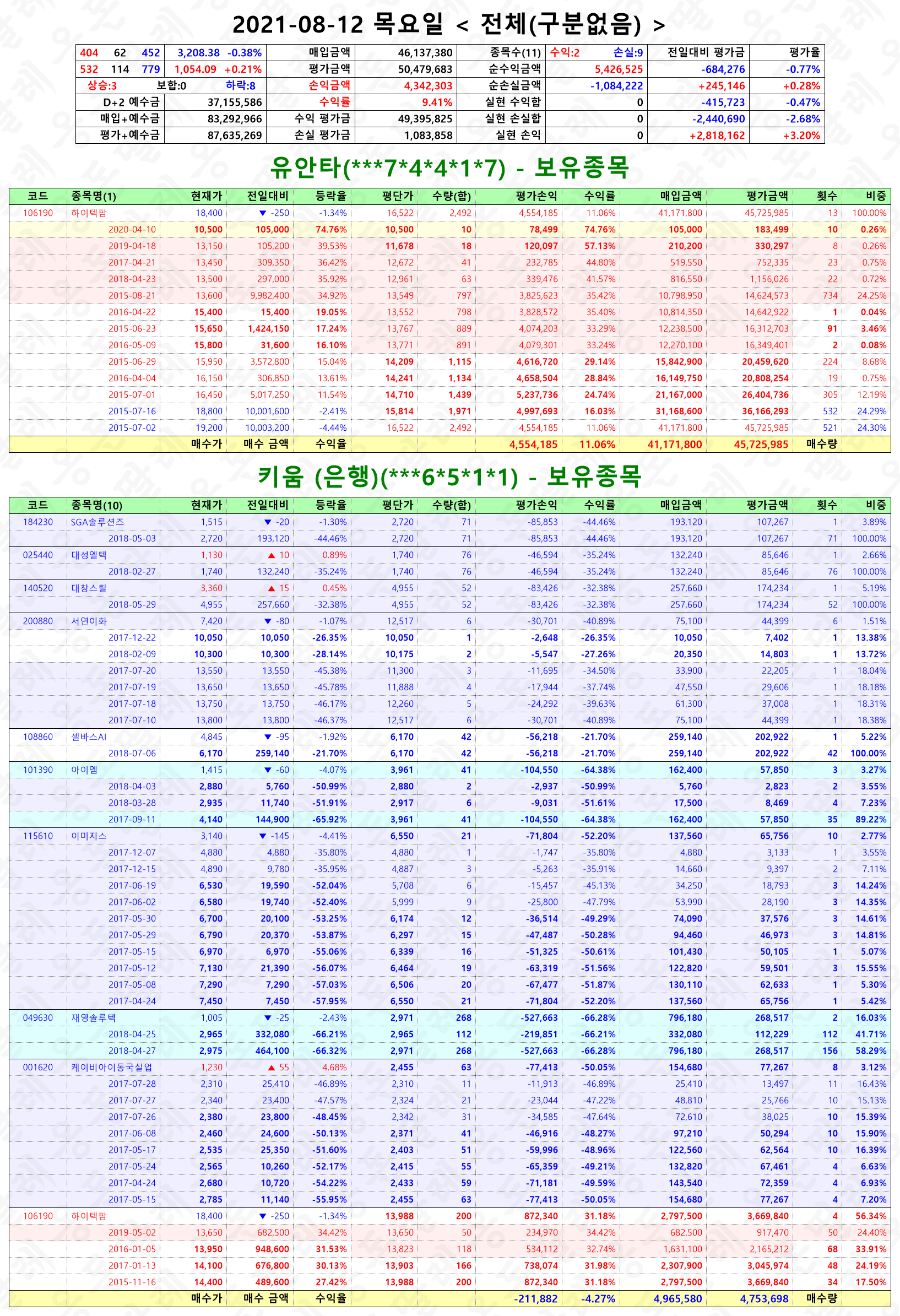 | + 50 만 24, 폭락장 대비 선빵했네? (0) | 2021.08.17 |