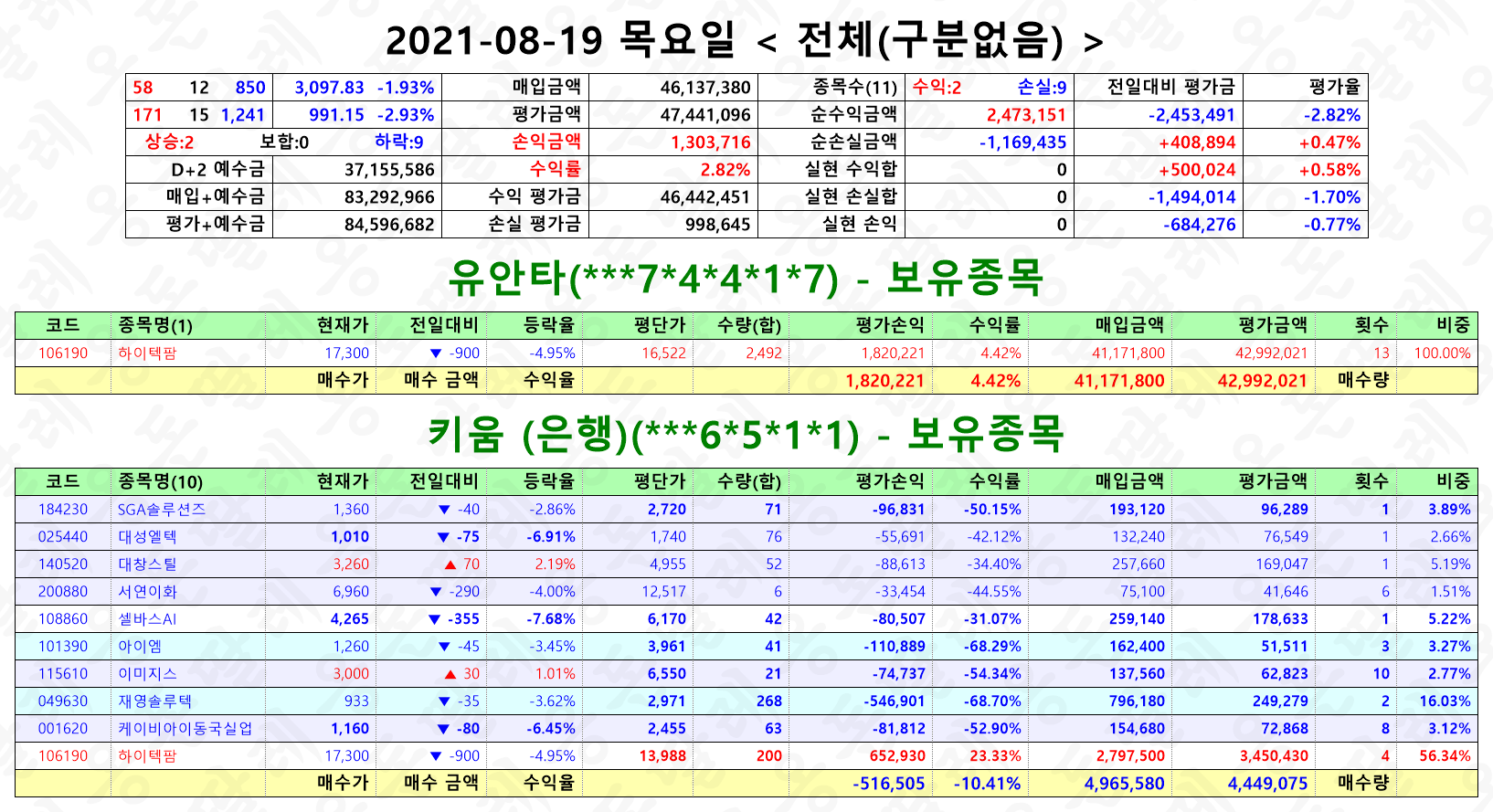 종목수 줄이고~ 현금화 많이 해 놨다ㅋ