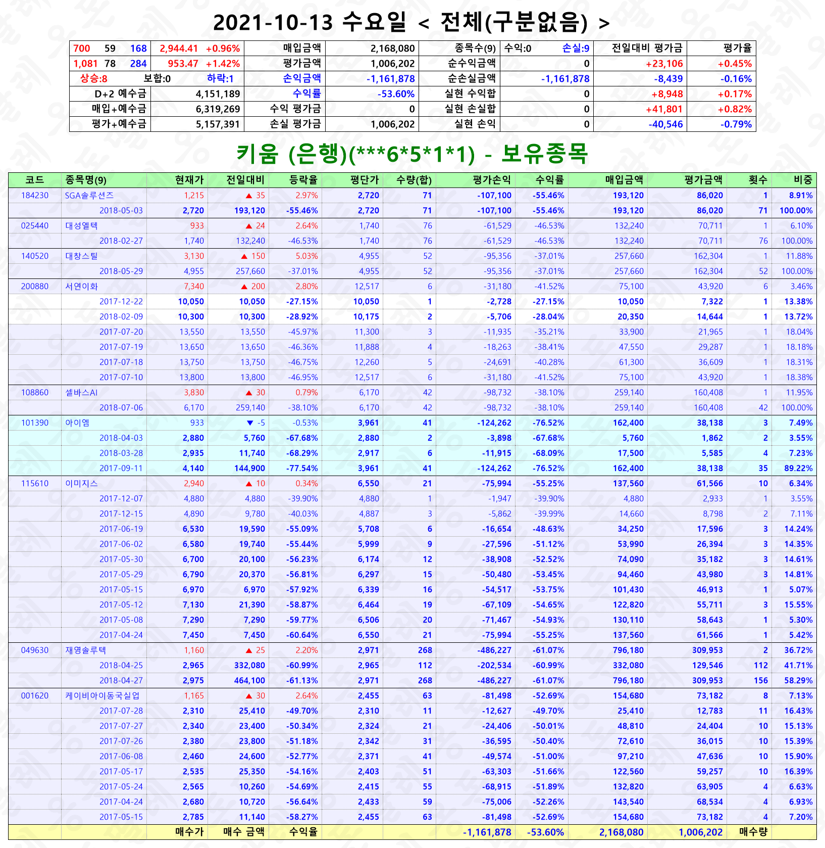 | + 4 만 1801, 오랜만에 전일대비 수익. (0) | 2021.10.07 |